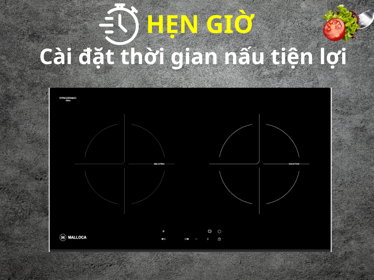 Tính năng hẹn giờ trên bếp từ Malloca MH-7320 I mang lại sự tiện lợi và linh hoạt cho quá trình nấu nướng của bạn. Bạn có thể cài đặt hẹn giờ tắt bếp từ 1 đến 99 phút. Bếp sẽ tự động tắt sau khi hết giờ hẹn mà bạn không cần phải đứng đợi tắt bếp. Trong khi chờ món ăn hoàn thành, bạn có thể rảnh tay để làm việc khác mà không lo việc quên tắt bếp gây cháy nồi và những sự cố không mong muốn khác.