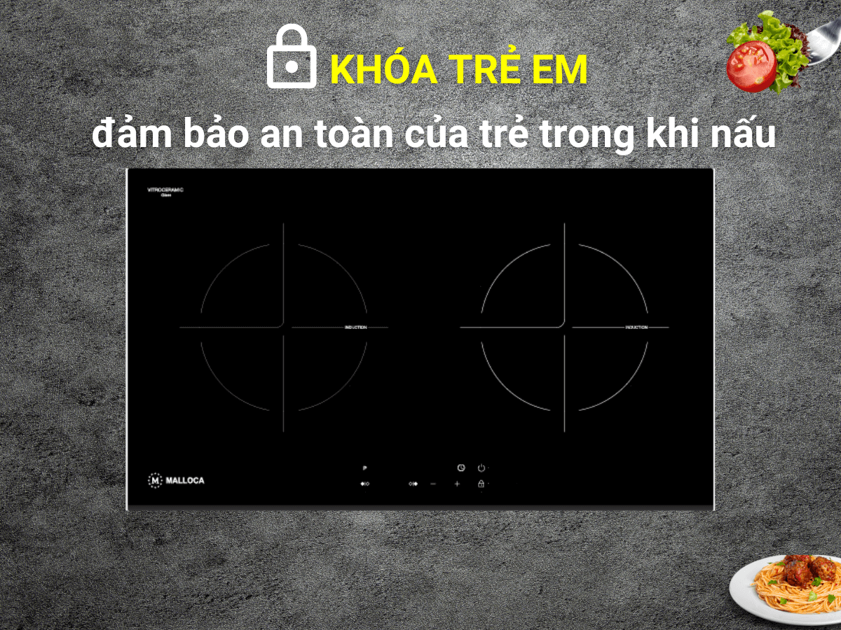 Bếp từ Malloca MH-7320 I được trang bị tính năng khóa trẻ em, giúp đảm bảo an toàn cho gia đình, đặc biệt là trẻ nhỏ. Tính năng này cho phép bạn khóa và vô hiệu hóa hệ thống bảng điều khiển trên bếp từ, ngăn chặn trẻ em vô tình điều khiển bếp gây các sự cố không an toàn. Đồng thời đảm bảo món ăn được nấu chín theo đúng cài đặt ban đầu, tránh những thay đổi ngẫu nhiên trong quá trình nấu.