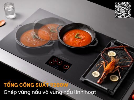 Đa vùng nấu tổng công suất 9200W, tính năng ghép vùng nấu và vùng nấu linh hoạt