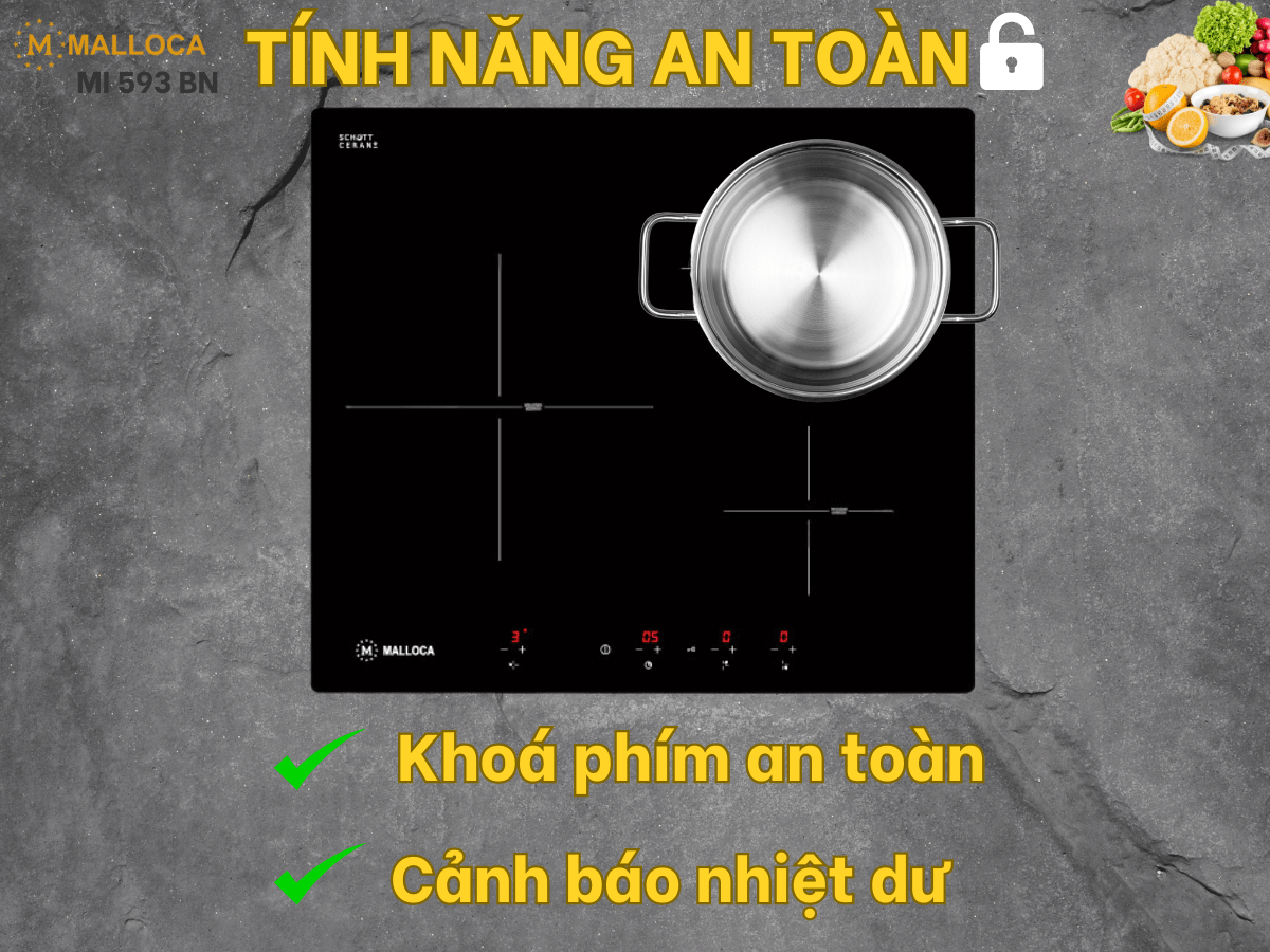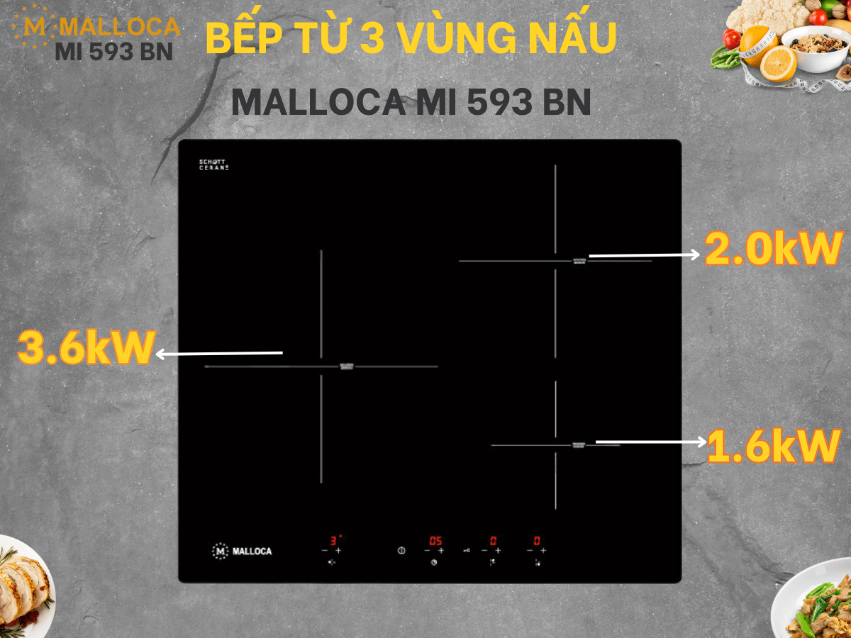 Bếp từ Malloca MI 593 BN là sản phẩm đang được nhiều người dùng tin tưởng và lựa chọn. Đây là mẫu bếp từ được nhập khẩu trực tiếp từ Tây Ban Nha. Bếp từ Malloca MI 593 BN với thiết kế 3 vùng nấu, tổng công suất nấu lên đến 6.0kW chắc chắn sẽ mang đến nhiều trải nghiệm thú vị hơn cho người nội trợ.