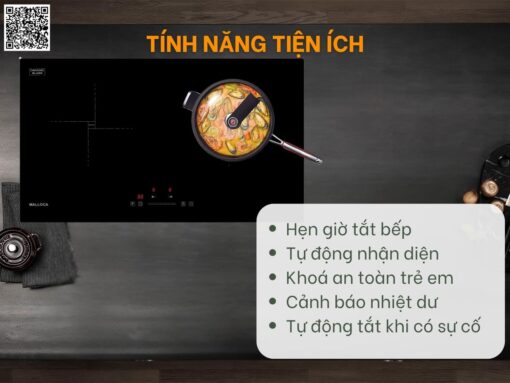 Bếp từ Malloca MIH 732 ECO thiết kế lắp âm với mặt kính Ceramic sang trọng, bền bỉ. Bếp có 2 vùng nấu điều khiển độc lập bằng bảng cảm ứng trượt, tổng công suất 3600W giúp nấu nướng nhanh chóng, tiện lợi. Bếp còn có nhiều tính năng công nghệ hiện đại đem đến trải nghiệm nấu nướng tuyệt vời cho người dùng: booster gia nhiệt nhanh, tự nhận diện xoong nồi, hẹn giờ, cảnh báo nhiệt dư, khoá trẻ em, tự động tắt bếp khi có sự cố…