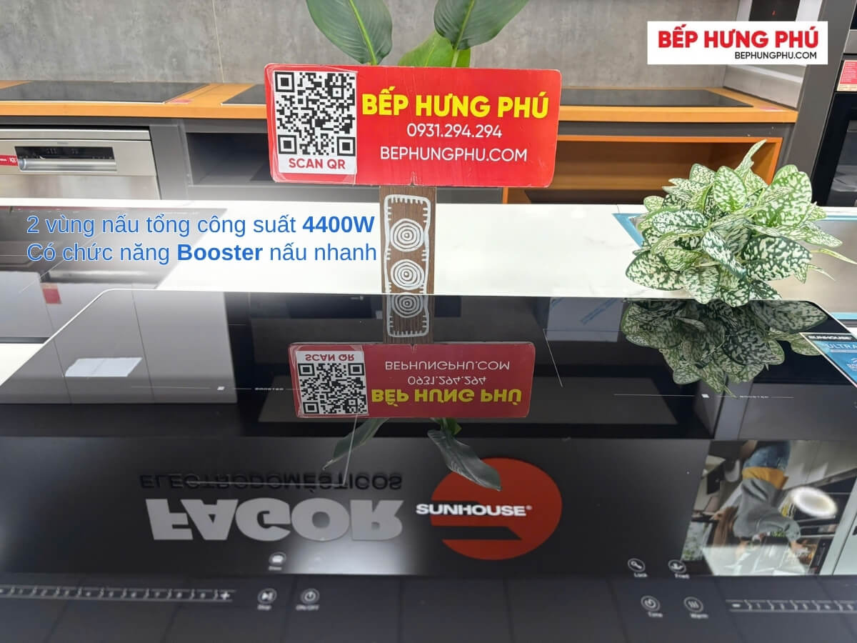 2 vùng nấu công suất 4400W, có chức năng Booster nấu nhanh