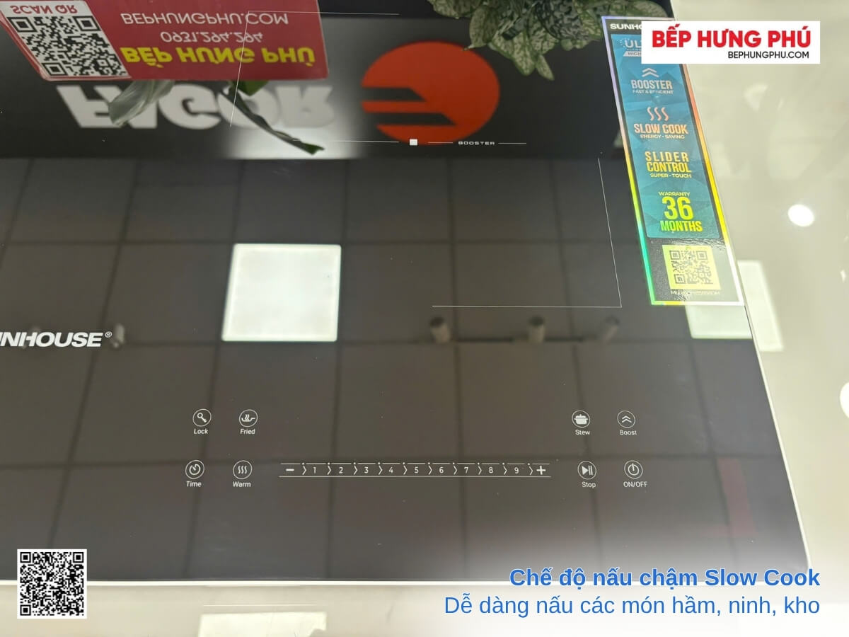 Bếp từ Sunhouse SHB5888DH còn có chế độ nấu chậm Slow Cook giúp bạn dễ dàng nấu các món hầm, ninh, kho trong kho thời gian dài với mức nhiệt thấp từ 40℃ – 80℃ để món ăn được chín từ từ và vẫn giữ trọn được dưỡng chất.
