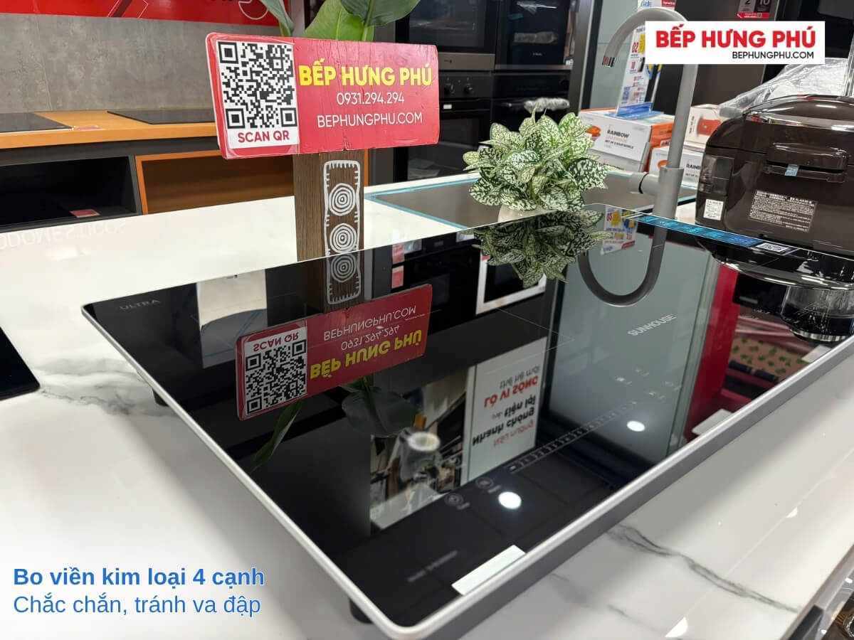Bên cạnh đó là khả năng chịu lực cao, bạn có thể thoải mái sử dụng nồi nấu trên cả 2 vùng nấu cùng lúc mà không lo trọng lượng lớn từ xoong nồi làm hỏng mặt kính. Mặt kính Ceramic trên bếp từ này còn được hoàn thiện với độ nhẵn mịn cao, dễ dàng vệ sinh, lau chùi. Đặc biệt còn bo viền kim loại 4 cạnh chắc chắn, giúp bảo vệ mặt kính, tránh các nguy cơ gây nứt vỡ khi bị va đập vào mép sản phẩm.
