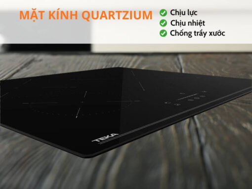 Bếp từ Teka IBC 63110 SSM BK được trang bị mặt kính Quartzium hiện đại, nổi bật với khả năng chịu lực, chịu nhiệt vượt trội. Nhờ đó, bếp có thể hoạt động ổn định ngay cả khi nấu ở công suất cao trong thời gian dài. Bề mặt kính sáng bóng, chống trầy xước tốt và rất dễ dàng vệ sinh sau mỗi lần sử dụng. Không chỉ mang lại độ bền bỉ, mặt kính còn giúp tổng thể thiết kế của bếp thêm sang trọng, phù hợp với nhiều không gian bếp hiện đại.