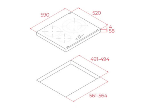 - Kích thước khoét đá: 561-564R x 491-494S mm