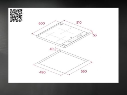 • Kích thước lắp đặt âm: 560R x 490S mm