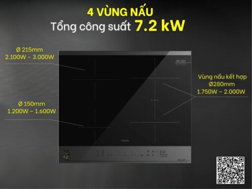4 vùng nấu tổng công suất 7.200W, chức năng Power Plus