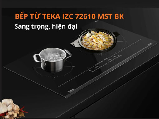 Bếp từ Teka IZC 72610 MST BK là dòng bếp từ cao cấp, được thiết kế lắp âm sang trọng với mặt kính Quartzium chịu nhiệt, mang đến vẻ đẹp hiện đại và độ bền vượt trội. Sản phẩm không chỉ gây ấn tượng bởi thiết kế tinh tế mà còn bởi nhiều tính năng thông minh như 2 vùng nấu tiện lợi, bảng điều khiển cảm ứng dạng trượt, chế độ DirectFunction và khả năng tăng cường công suất Power Plus. Đây là lựa chọn hoàn hảo cho những gia đình muốn tối ưu không gian bếp, nấu ăn nhanh chóng, an toàn và tiết kiệm điện.