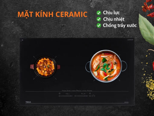 Bếp từ Teka IZC 72610 MST BK được trang bị mặt kính Ceramic (Quartzium) cao cấp, nổi bật với khả năng chịu nhiệt và chịu lực vượt trội. Chất liệu kính này giúp bếp luôn bền bỉ, hạn chế nứt vỡ trong quá trình sử dụng, đồng thời chống trầy xước hiệu quả. Với bề mặt sáng bóng, thiết kế sang trọng, chiếc bếp không chỉ mang lại vẻ hiện đại cho căn bếp mà còn dễ dàng vệ sinh, tiết kiệm thời gian lau chùi sau khi nấu. Đây chính là điểm cộng lớn khiến sản phẩm được nhiều gia đình tin chọn cho không gian bếp cao cấp.