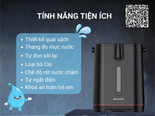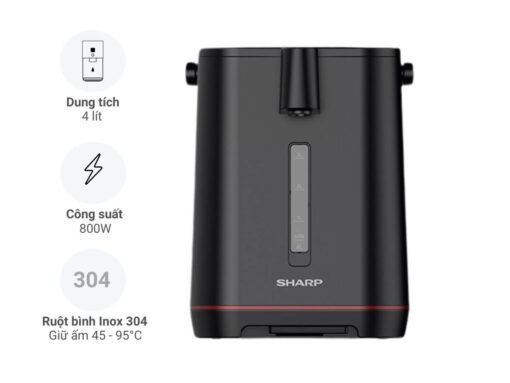Bình thủy điện Sharp KP-40EBV-BK với chức năng đun sôi nước 100°C và giữ ấm 11 mức nhiệt 45 – 95°C, cùng dung tích lớn 4 lít, đáp ứng tốt nhu cầu sử dụng nước nóng cho cả gia đình. Hệ thống bảng điều khiển cảm ứng và màn hình hiển thị LED hiện đại, giao diện tiếng Việt dễ sử dụng. Đặc biệt bình còn có chức năng khử Clo, tự đun sôi lại khi nước nguội, khoá an toàn trẻ em… mang đến nhiều trải nghiệm tiện lợi và an toàn.