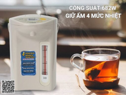 Bình thủy điện Tiger PDR-S30W trang bị công suất 682W giúp đun nước nhanh chóng và giữ ấm nước ổn định. Bình đun sôi nước ở nhiệt độ 100°C, và giữ ấm ở 4 mức nhiệt 70 – 80 – 90 – 98°C. Với chiếc bình này, bạn có thể tuỳ chọn chính xác nhiệt độ nước nóng mong muốn để đáp ứng tốt nhất cho nhu cầu của mình.