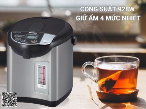 Bình thủy điện Tiger PDU-A30W trang bị công suất 928W giúp đun nước nhanh chóng và giữ ấm nước ổn định. Bình đun sôi nước ở nhiệt độ 100°C, và giữ ấm ở 4 mức nhiệt 70 – 80 – 90 – 98°C. Với chiếc bình này, bạn có thể tuỳ chọn chính xác nhiệt độ nước nóng mong muốn để đáp ứng tốt nhất cho nhu cầu của mình.