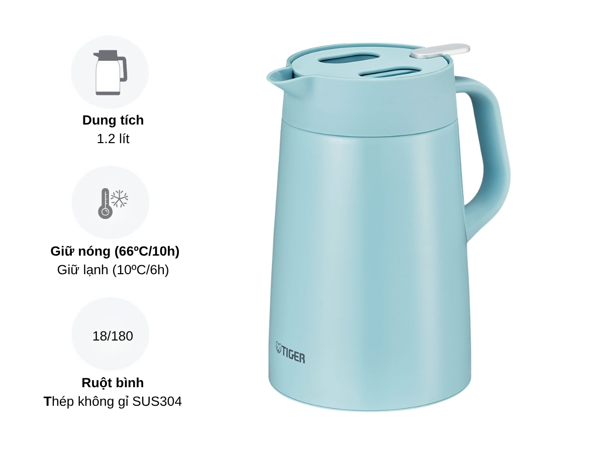 Bình thủy Tiger PWO-A120 với dung tích 1.2 lít là lựa chọn lý tưởng cho gia đình hoặc văn phòng. Sản phẩm được trang bị ruột inox cách nhiệt chân không, giúp giữ nhiệt hiệu quả trong nhiều giờ. Vỏ ngoài được chế tác từ inox cao cấp, mang đến vẻ ngoài sang trọng và độ bền cao. Nắp bình thiết kế thông minh, cho phép mở/đóng dễ dàng bằng cách nhấn nhẹ, thuận tiện cho người sử dụng. Với thiết kế nhỏ gọn và trọng lượng chỉ khoảng 0.69kg, Bình thủy Tiger PWO-A120 dễ dàng di chuyển và sử dụng trong nhiều không gian khác nhau.