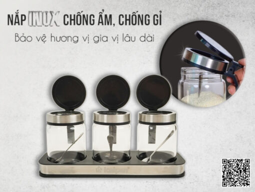 • Tặng kèm 3 muỗng inox thuận tiện lấy gia vị, chất liệu inox cao cấp, chống gỉ & an toàn