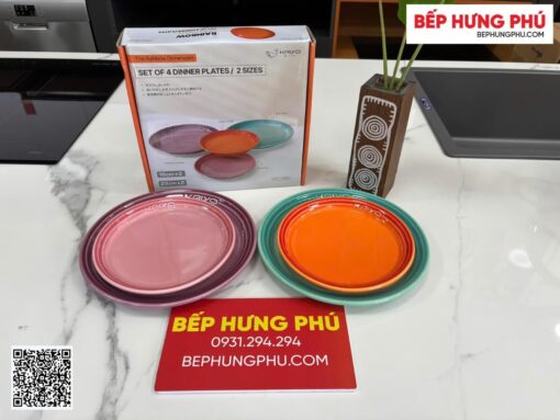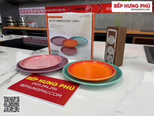 – Bộ 4 đĩa sứ dáng phẳng có kích thước: Ø18cm x 2, Ø23cm x 2, phù hợp bày trí nhiều món ăn khác nhau