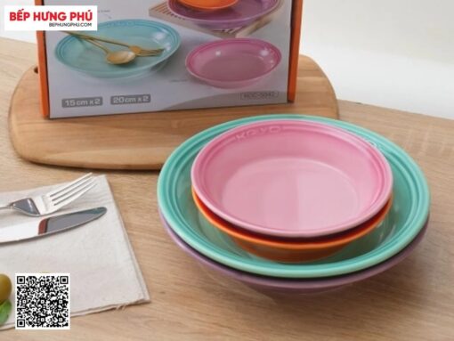 – Bộ 4 đĩa sứ dáng vát có kích thước: Ø15cm x 2, Ø20cm x 2, phù hợp bày trí nhiều món ăn khác nhau