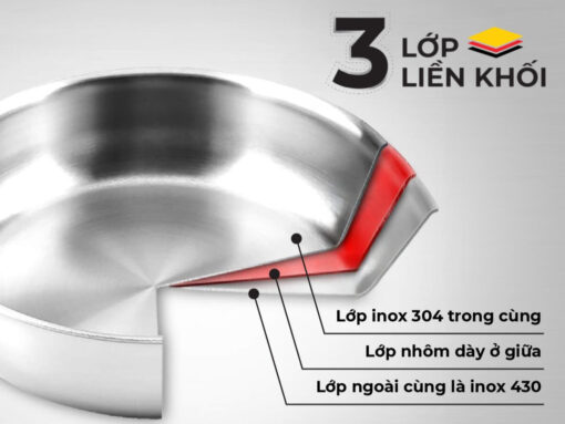 Chất liệu inox 304, cấu tạo đáy 3 lớp liền thân