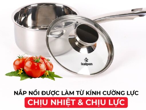Bộ nồi chảo inox Kalpen Baby BB14 với phần nắp nồi được làm từ thủy tinh với kết cấu dày dặn, chắc chắn, chịu được nhiệt độ cao và chịu được những va chạm trong quá trình nấu nướng, cho độ bền bỉ đáng tin cậy.