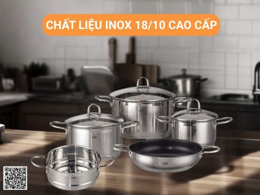 - Chất liệu: Inox 18/10 cao cấp, an toàn khi tiếp xúc thực phẩm, không phát sinh chất độc hại ở nhiệt độ cao.