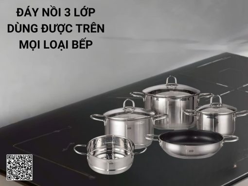 - Lớp dưới cùng: Thép nhiễm từ (Inox 430), giúp nồi bắt từ hiệu quả, dùng được trên bếp từ.