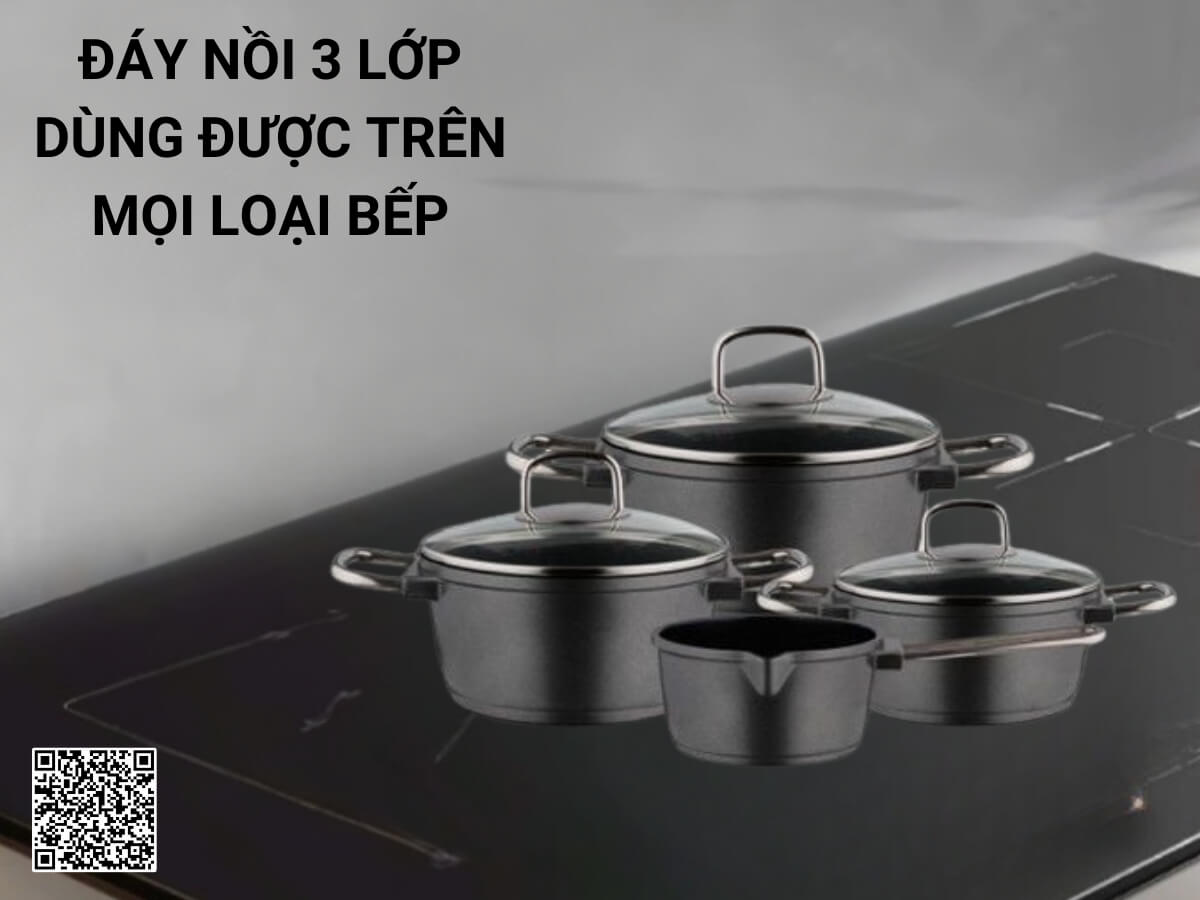 – Tương thích bếp: Dùng được cho tất cả các loại bếp (bếp từ, bếp gas, bếp điện, bếp hồng ngoại…).