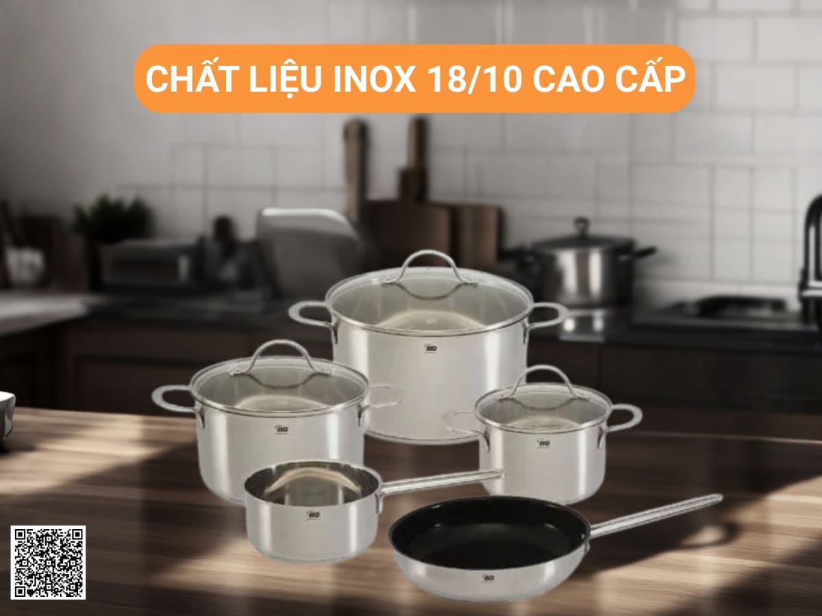Bộ nồi Elo Top Collection Plus 5 món được làm từ chất liệu Inox 18/10. Đây là loại inox cao cấp được đánh giá là an toàn tuyệt đối, không biến chất khi chịu ảnh hưởng của nhiệt độ, áp suất, chất béo, muối, axit từ thực phẩm. Chất liệu này có khả năng chịu nhiệt cao với đặc tính siêu bền và sáng bóng, bảo đảm tính thẩm mỹ và tuổi thọ cho sản phẩm.