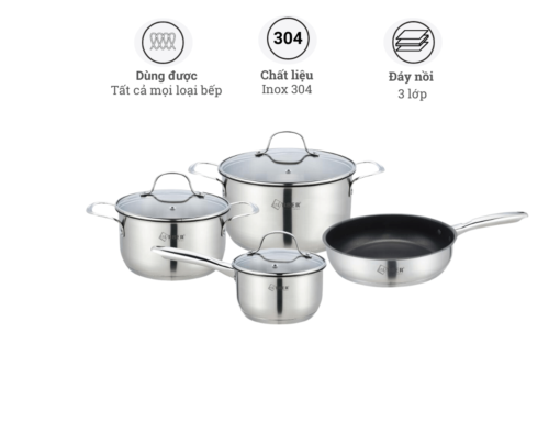 – Đáy nồi cấu tạo 3 lớp: lớp inox 304 bên trong cùng, lớp nhôm ở giữa và lớp inox 430 bên ngoài. Hiệu suất dẫn nhiệt tốt, phân bổ nhiệt đều và giữ nhiệt lâu.