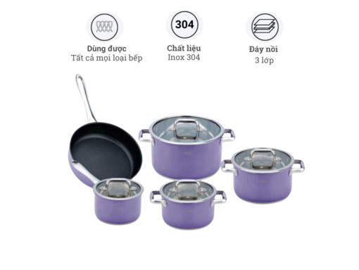 – Lớp ngoài cùng sơn phủ màu tím tăng thêm thẩm mỹ cho không gian nấu nướng.