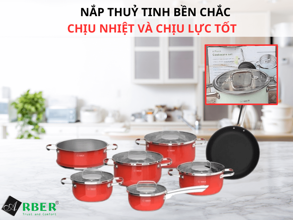 Bộ nồi inox Arber GARNET với phần nắp nồi được làm từ thủy tinh với kết cấu dày dặn, chắc chắn, chịu được nhiệt độ cao và chịu được những va chạm trong quá trình nấu nướng, cho độ bền bỉ đáng tin cậy.