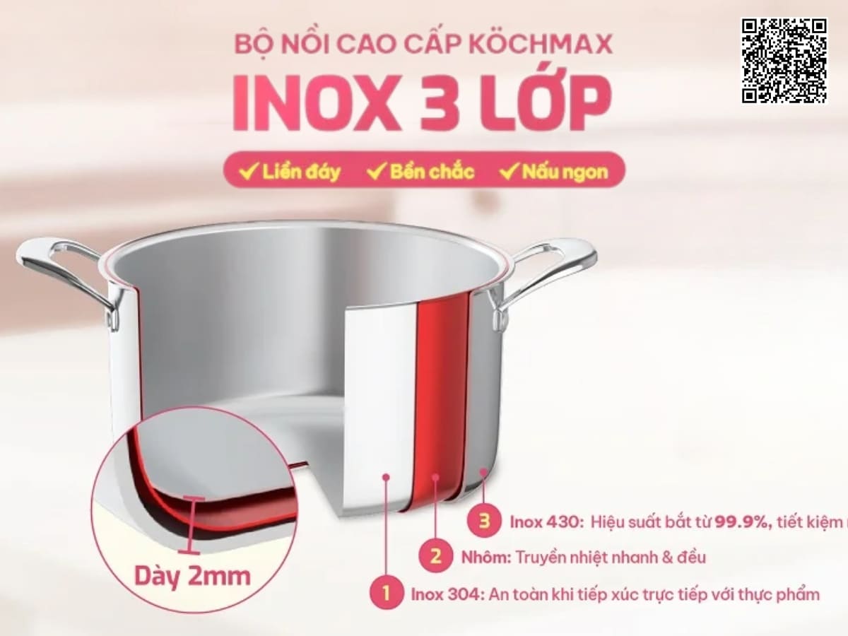 Inox 3 lớp nguyên khối – Dày gấp 4 lần, bền chắc trọn đời