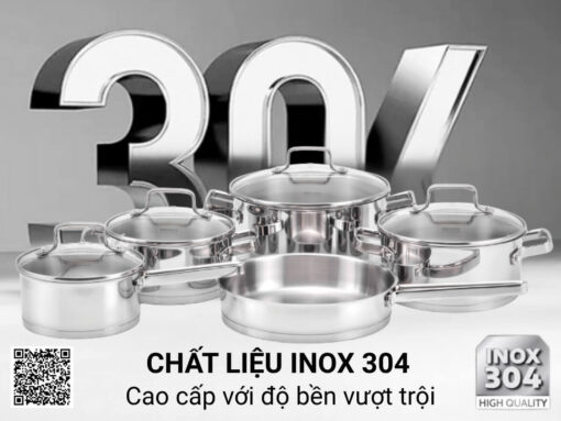 Bộ nồi được làm từ chất liệu inox 304 an toàn, chống hoen gỉ, dễ vệ sinh