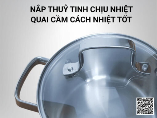 – Nắp nồi thuỷ tinh bền chắc, chịu nhiệt tốt, dễ quan sát khi nấu nướng