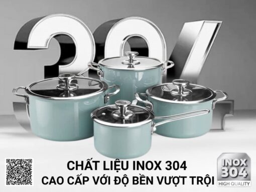 Bộ nồi inox So Home Sydney Australia được làm từ chất liệu inox 304 cao cấp với độ bền vượt trội. Inox 304 là hợp kim của 72% thép, 18% crôm và 8% niken, kết hợp với tối đa 0,08% carbon. Thép có đặc tính cứng chắc, bền bỉ, đảm bảo độ bền, chịu nhiệt và chịu lực cho nồi. Crôm làm cho nồi không gỉ sét và niken giúp chống axit và tăng thêm độ bóng cho bề mặt. Các thành phần đảm bảo các đặc tính sử dụng tốt nhất và có thời hạn sử dụng lâu bền.