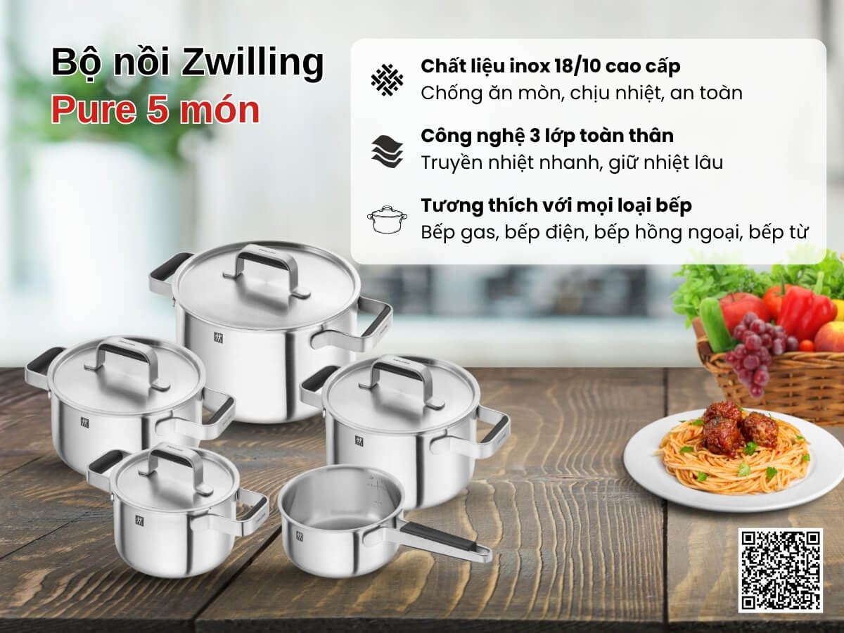 Tổng quan về bộ nồi inox Zwilling Pure 5 món