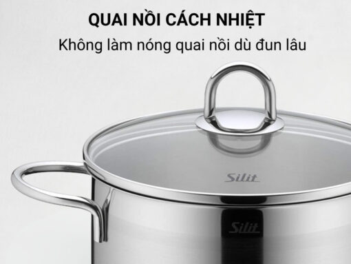 Bộ nồi Silit Diamant 7 món còn được bổ sung thêm công nghệ cách nhiệt cho phần quai nồi, không làm nóng quai nồi dù đun nấu trong thời gian lâu. Vừa đảm bảo an toàn cho người dùng khỏi các sự cố bỏng khi mở nắp hoặc nhấc nồi lên, vừa tiện lợi sử dụng bởi không cần phải dùng thêm miếng nhấc nồi. Trải nghiệm nấu nướng sẽ tuyệt vời hơn bao giờ hết.
