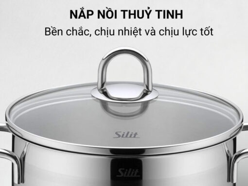 Bộ nồi Silit Diamant 7 món được hoàn thiện trong từng bộ phận, từng chi tiết thiết kế. Phần nắp nồi được làm từ thủy tinh với kết cấu chắc chắn, chịu được nhiệt độ cao trong quá trình nấu nướng, và chịu lực tốt, cho độ bền bỉ đáng tin cậy. Độ sáng bóng của thuỷ tinh cũng là một điểm cộng giúp người dùng dễ dàng quan sát trực tiếp món ăn bên trong nồi mà không cần phải mở nắp nồi ra.