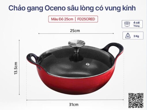Tổng quan về Chảo gang Oceno FD25CRED 25cm