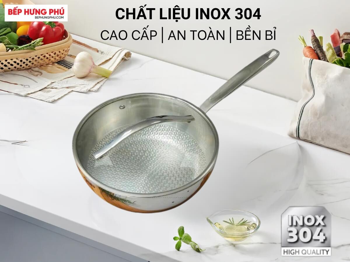 Chất liệu inox 304 an toàn, cấu tạo đáy 3 lớp liền thân