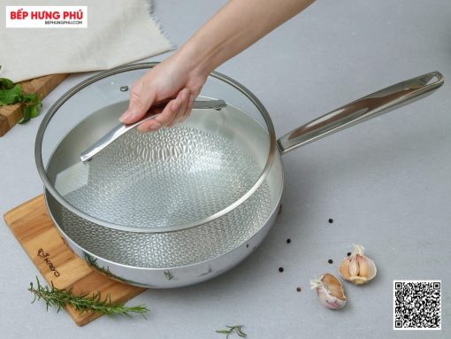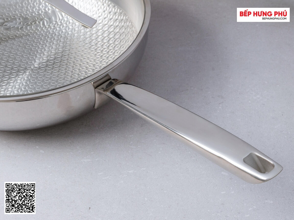 Chảo được sản xuất theo công nghệ đáy liền thân, cấu trúc 3 lớp, độ dày 2.5mm đem đến hiệu suất đun nấu cao. Đặc biệt là thành và đáy chảo đúc liền không có khe hở, đảm bảo độ bền và không lo bị bong đáy khi đun nấu trong thời gian dài.