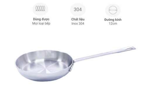 – Chảo có đường kính 12cm, cao 2.5cm, lòng chảo cạn phù hợp để chế biến các món chiên rán, áp chảo, trứng ốp la…