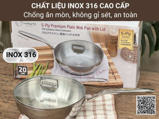 Chảo inox 5 lớp liền thân Kaiyo KIW-3802 được làm từ chất liệu inox 316, là chất liệu inox cao cấp, an toàn, chuyên dùng cho các dụng cụ y tế và dụng cụ nấu nướng cao cấp. Inox 316 có đặc tính bền chắc, chống gỉ sét, chống ăn mòn, không sản sinh ra chất gây hại khi đun nấu ở nhiệt độ cao, đảm bảo an toàn sức khoẻ.