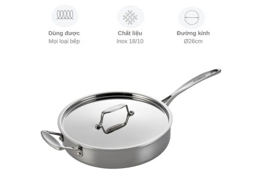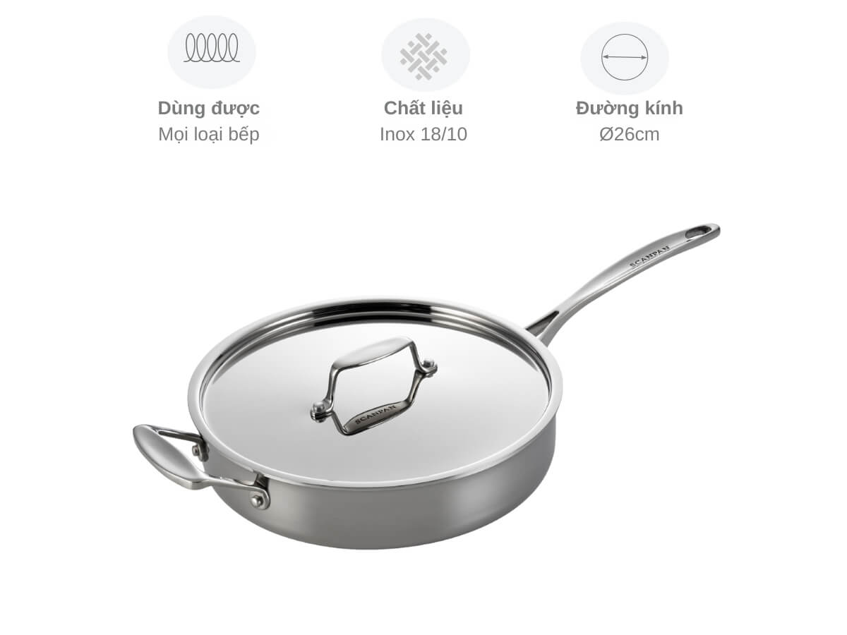 Chảo inox 5 lớp liền thân Scanpan Fusion 26 cm, dung tích 3.1 L, truyền nhiệt nhanh và đều