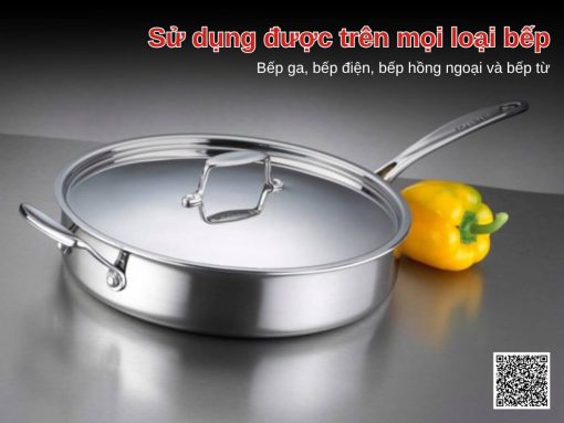 được làm từ inox 18/10 cao cấp với đáy đúc liền 5 lớp, giúp truyền nhiệt nhanh, đều và tiết kiệm năng lượng. Sản phẩm dùng được trên mọi loại bếp, chịu nhiệt tốt, tay cầm cách nhiệt an toàn, dễ thao tác. Kiểu dáng sang trọng, dễ vệ sinh, là lựa chọn lý tưởng cho mọi bếp ăn hiện đại. Tổng quan về chảo inox 5 lớp liền thân Scanpan Fusion 32cm 74003200 [caption id="attachment_121921" align="alignnone" width="1200"] Chất liệu inox 18/10 đáy đúc liền 5 lớp giúp truyền nhiệt nhanh, đồng đều và tối ưu năng lượng[/caption]Chảo inox 5 lớp liền thân Scanpan Fusion 32cm 74003200 được làm từ inox 18/10 cao cấp, đảm bảo độ bền, chống ăn mòn và an toàn cho sức khỏe. Cấu tạo 5 lớp liền thân và đáy giúp truyền nhiệt nhanh, phân bổ nhiệt đều, dễ kiểm soát nhiệt độ trong quá trình nấu nướng và tiết kiệm năng lượng. Nhờ kỹ thuật đúc áp lực đặc biệt, chảo không bị cong hay vênh và hoàn toàn loại bỏ các điểm nóng, giúp thức ăn chín đều, giữ nhiệt tốt hơn các loại chảo inox thông thường. Sử dụng được trên mọi loại bếp [caption id="attachment_121918" align="alignnone" width="1200"] Tay cầm bằng inox đặc, gắn chắc chắn bằng đinh vít, chống nóng tốt, an toàn khi sử dụng[/caption]Scanpan Fusion 32cm 74003200 với tay cầm chảo được làm bằng inox đặc, cố định bằng đinh vít chắc chắn, giúp chống nóng hiệu quả khi nấu trên bếp ga hoặc trong lò nướng ở nhiệt độ lên đến 260°C. Thiết kế tay cầm đảm bảo an toàn và thuận tiện khi thao tác, đồng thời giữ chảo vững chắc ngay cả khi di chuyển với thực phẩm nặng. Dễ dàng vệ sinh Chảo inox 5 lớp liền thân Scanpan Fusion 32cm 74003200 rất dễ dàng vệ sinh sau khi sử dụng và hoàn toàn an toàn cho máy rửa bát. Bề mặt inox bóng bẩy giúp loại bỏ thức ăn bám dính nhanh chóng, đồng thời đảm bảo vệ sinh và an toàn cho sức khỏe. Hình ảnh thực tế [caption id="attachment_121919" align="alignnone" width="1200"] Tương thích với mọi loại bếp, dễ dàng sử dụng[/caption][caption id="attachment_121917" align="alignnone" width="1200"] Showroom Bếp Hưng Phú[/caption]Ngoài ra quý khách hàng có thể tham khảo thêm các sản phẩm