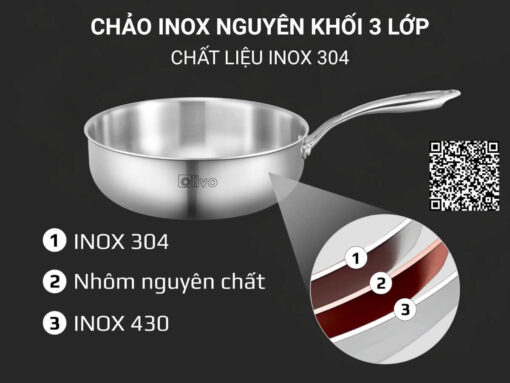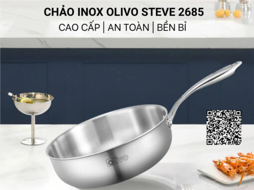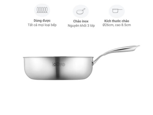 Chảo inox Olivo Steve 2685 26cm cấu tạo chảo inox nguyên khối 3 lớp, chất liệu inox 304 cao cấp, cơ chế chống dính tự nhiên đảm bảo an toàn sức khoẻ.