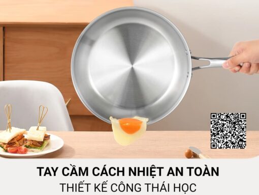 - Chảo nguyên khối 3 lớp, chất liệu inox 304 cao cấp, chống hoen gỉ, an toàn sức khoẻ