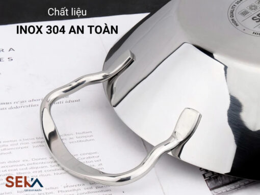 Chảo xào inox Seka SKM2832 24cm với lớp trong cùng tiếp xúc trực tiếp với thực phẩm là inox 304. Đây là chất liệu đã được kiểm nghiệm là an toàn, được ứng dụng rộng rãi trong ngành sản xuất dụng cụ nhà bếp, dụng cụ y tế. Với inox 304, bạn hoàn toàn yên tâm đun nấu nồi ở nhiệt độ cao mà không lo sản sinh ra chất gây hại, đảm bảo an toàn cho sức khoẻ. Chất liệu inox 304 cao cấp còn bảo vệ nồi trước những tác động bên ngoài trong quá trình nấu nướng, không lo bị oxy hoá hay ăn mòn, đồng thời việc vệ sinh, chùi rửa cũng dễ dàng hơn.