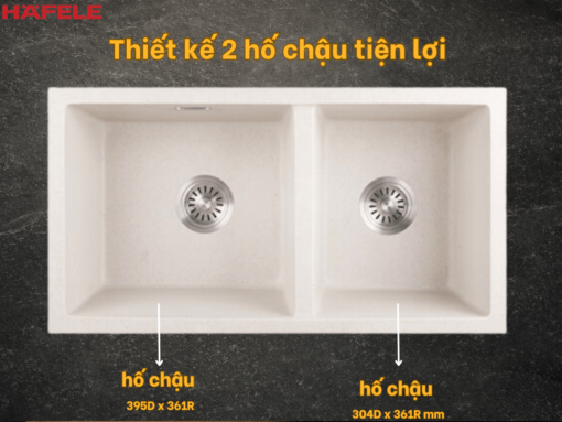 Chậu đá Hafele HS22-GEN2S90 (577.25.410) có thiết kế 2 hố chậu với kích thước khác nhau, vừa tạo nét độc đáo, vừa đáp ứng tốt nhu cầu sử dụng đa dạng của người dùng. Với 2 hố chậu, bạn có thể tách biệt khu vực rửa dụng cụ nấu nướng, ăn uống và khu vực rửa thực phẩm tươi sống, vừa tiện lợi sử dụng, vừa đảm bảo an toàn vệ sinh.
