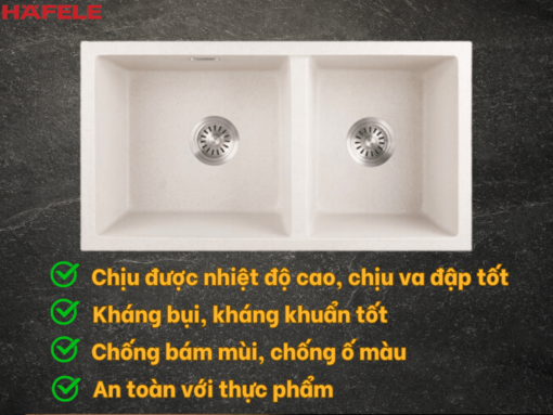 Với đặc tính kháng bụi, kháng khuẩn, chậu đá Hafele HS22-GEN2S90 (577.25.410) cũng rất an toàn khi tiếp xúc với các loại thực phẩm. Hơn nữa, thành phần cấu tạo là đá cao cấp với phương pháp xử lý đặc biệt, đảm bảo an toàn, không có các chất có hại sản sinh trong quá trình sử dụng.