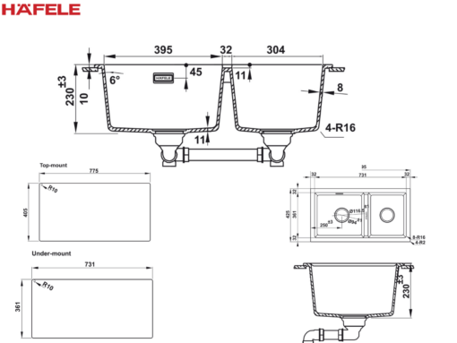 Với chậu đá Hafele HS22-GEN2S90 (577.25.410) này, bạn có thể lắp nổi hoặc lắp âm đều được.